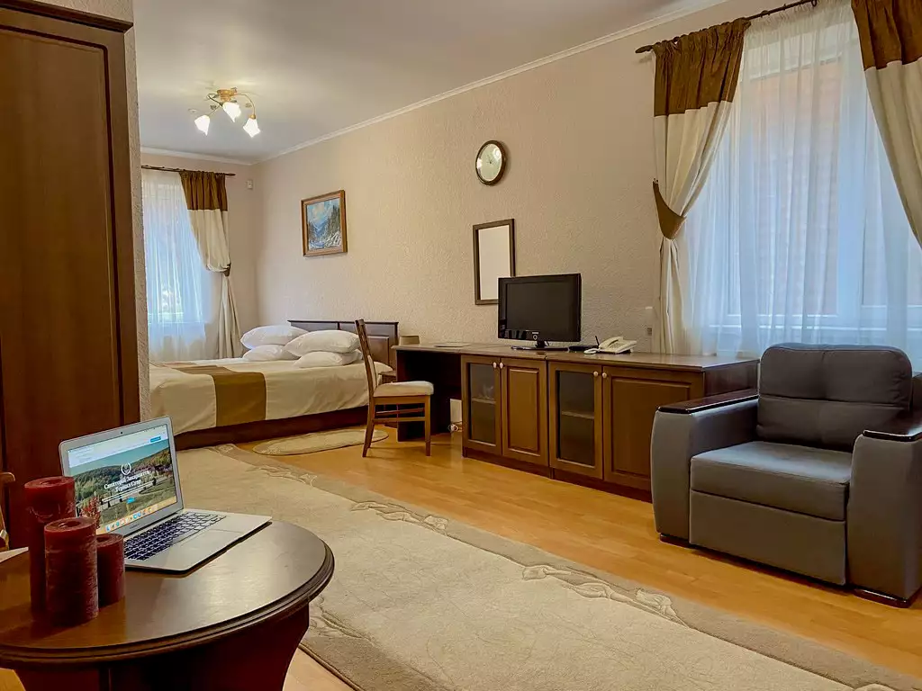Das Hauptgebäude von „Thermal Star“ (Solotwyno) bietet Unterkunft auf hohem Niveau in schön eingerichteten und mit allen Annehmlichkeiten ausgestatteten „Lux“- und „Standard“-Zimmern. Zusammen können sich hier fast 150 Personen bequem ausruhen.