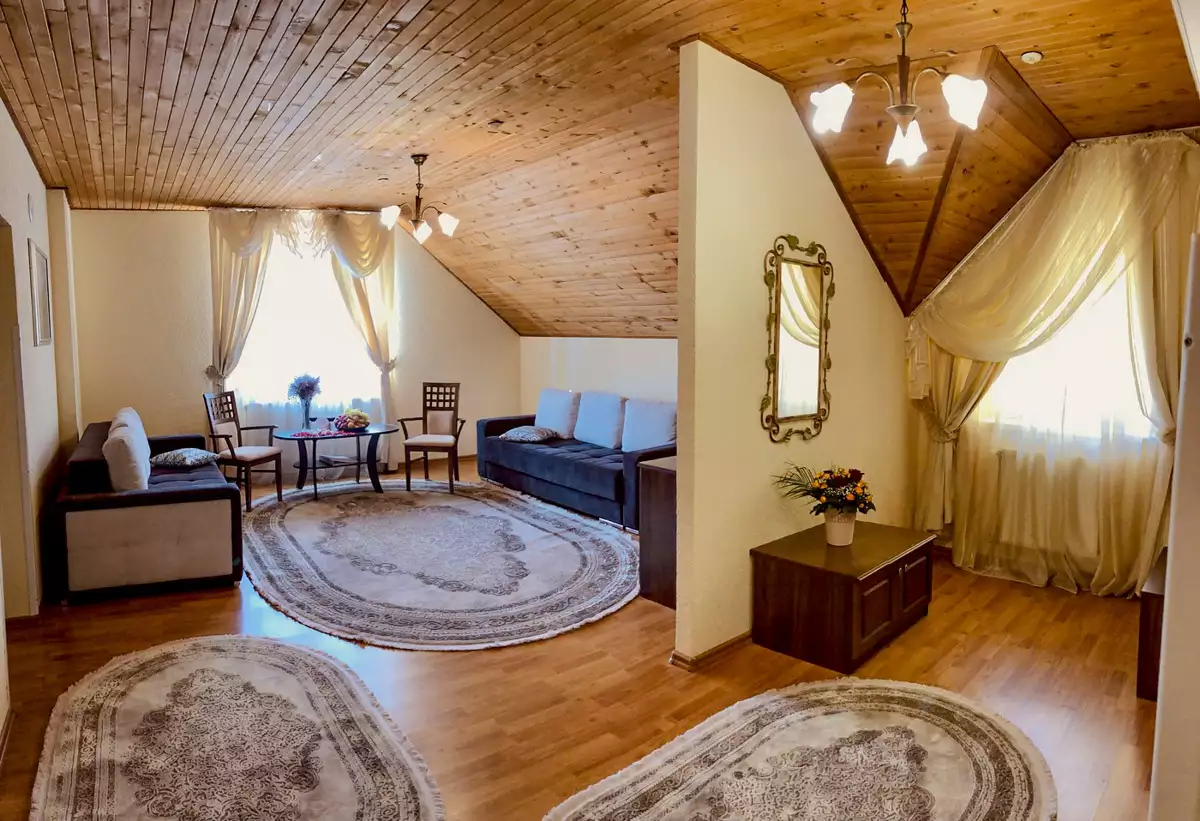 Auf dem Territorium des Sanatoriums gibt es zwölf ordentliche zweistöckige Cottages, die aus einem Baum geschnitten und von wunderschöner Natur umgeben sind. Sie bieten Unterkunft in der „Standard“-Klasse, „Semi-Suite“ mit einem Couchtisch, „Suite“ mit einem Klappsofa und „Grand-Suite“ mit einem Wohnzimmer, zwei Schlafzimmern, einem Spiegel und einem Bügeleisen. Im Sommer verfügen alle Zimmer über eine individuell regulierbare Klimaanlage. Überall gibt es ein Badezimmer, Internet, Kabel-TV, Minibar und Minisafe, Telefon, Fön und Kühlschrank. Hausschuhe und Bademäntel werden gestellt. Die Cottages bieten den Gästen auch ein Badehaus, ein Billardzimmer und die Wärme eines Kamins.