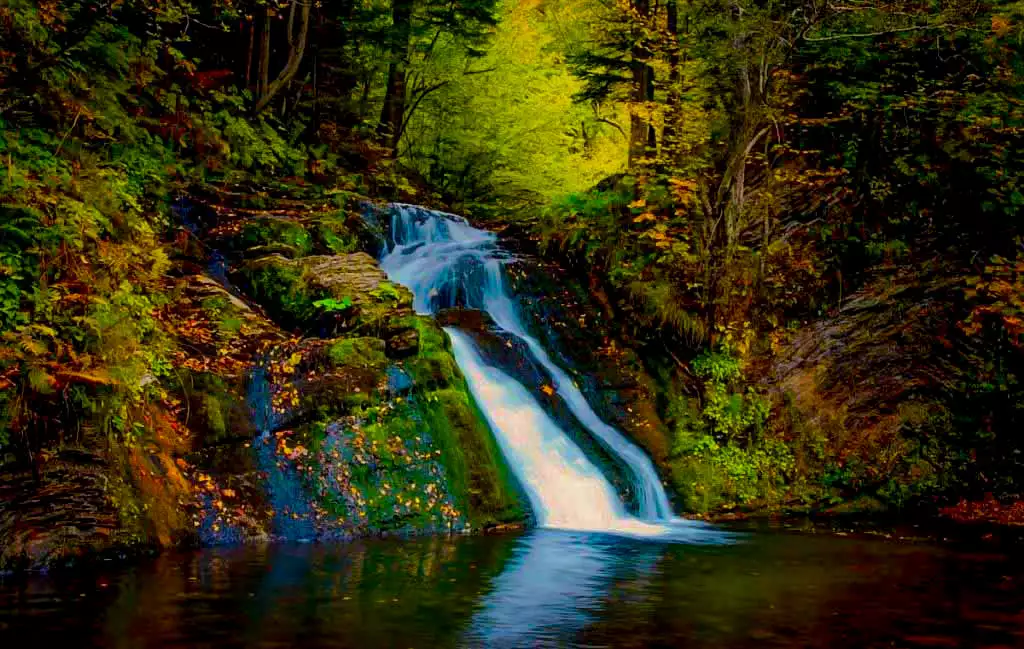 Der Wasserfall ist 5 Meter hoch und besonders im zeitigen Frühjahr, wenn der Schnee zu schmelzen beginnt, einen Besuch wert. In dieser Zeit erlangt er eine außergewöhnliche Schönheit, wird mächtig und fließt in Strömen, und Sie können den beeindruckenden Wasserstrom bewundern, der vom Berg Parashka herabfließt. Es bilden sich wunderschöne, geschwungene “Ples” mit einem Durchmesser von mehr als 10 m, daher der Name des Wasserfalls – Gurkalo.