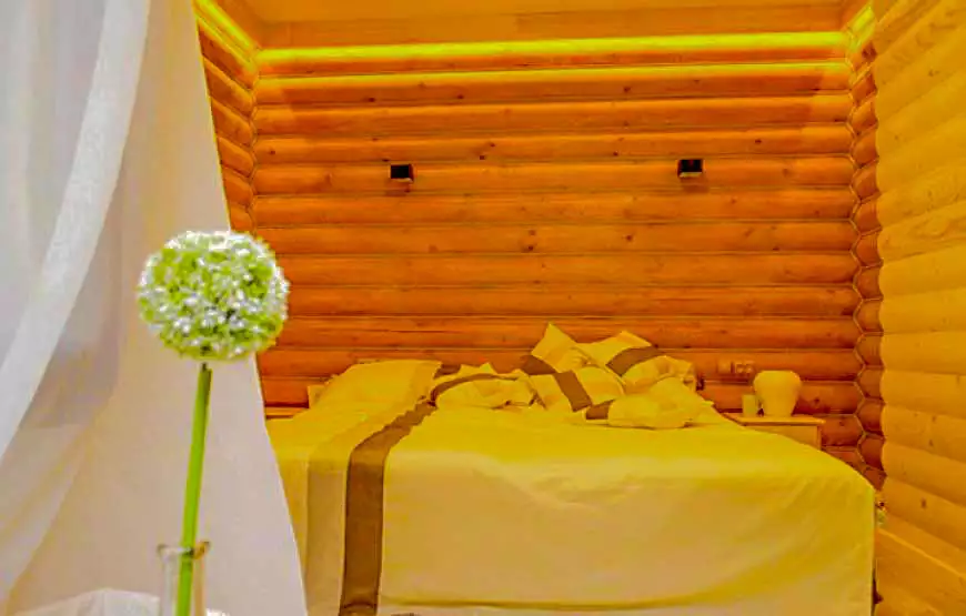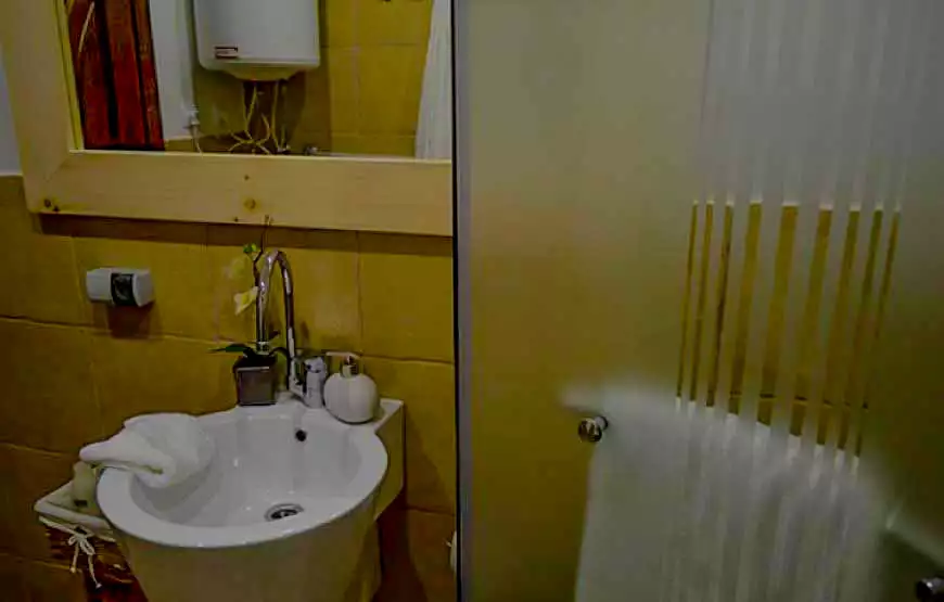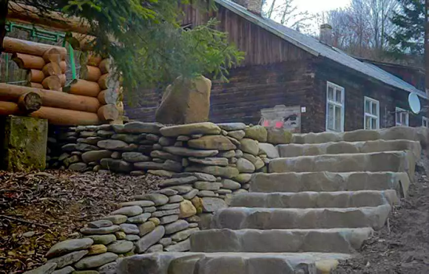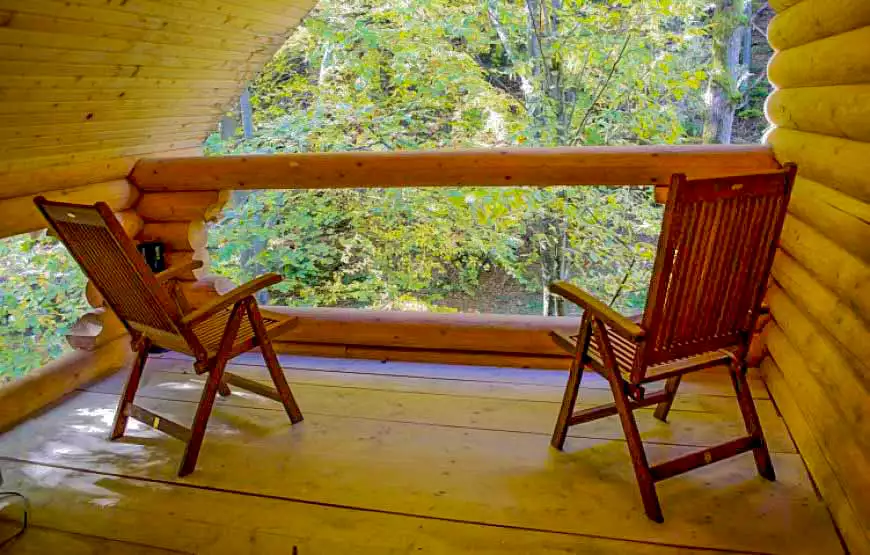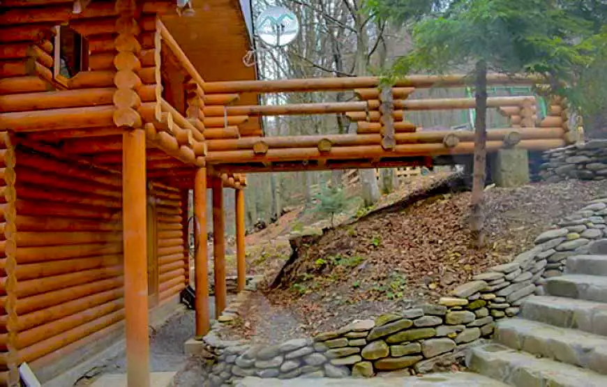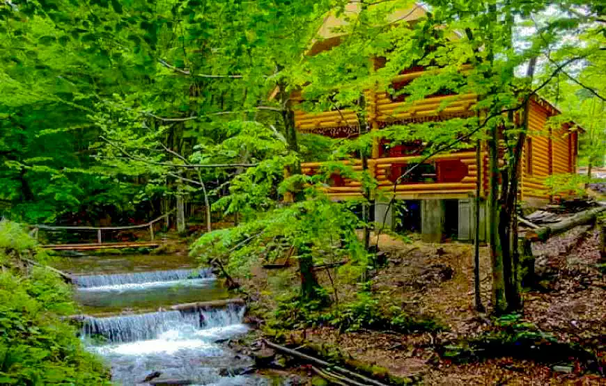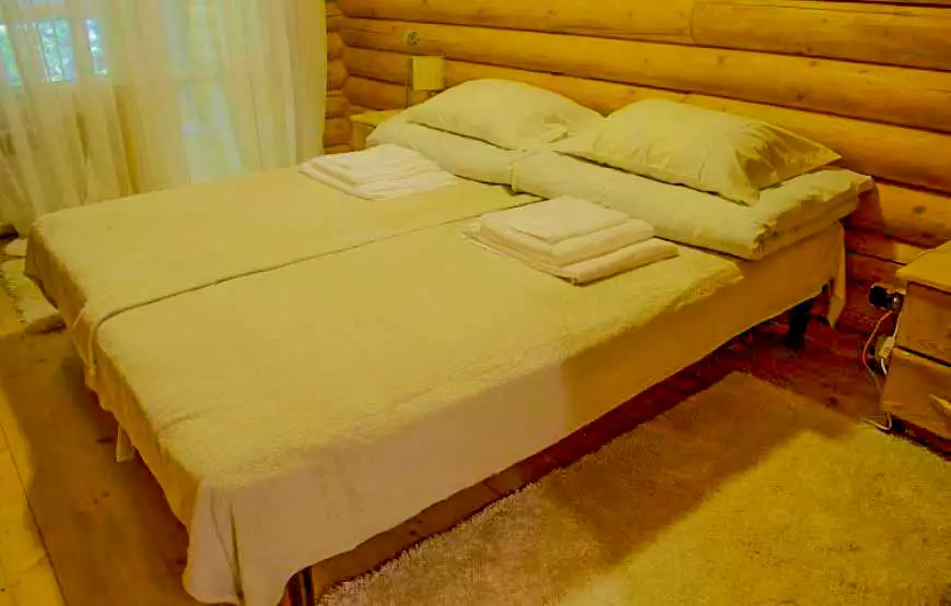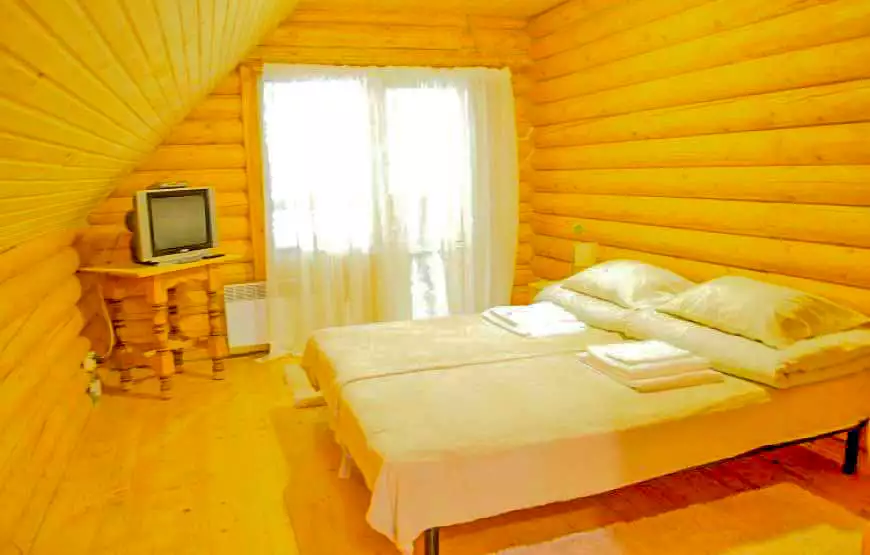 Котедж площею 120 м2 розташований на березі струмка. У котеджі: 2 затишні номери з окремими входами; вітальня з каміном, літня веранда з видом на гірський струмок, сауна, лежакова, душові з відрами водоспадами, туалет, кухня, пральна машина, холодильники, телевізор.