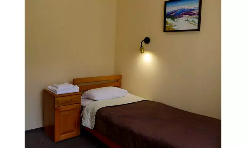 Prices for a standard single room start from UAH 1,063. The family package costs from UAH 1,985. All rooms have internet, heating, modern TV, telephone and refrigerator.