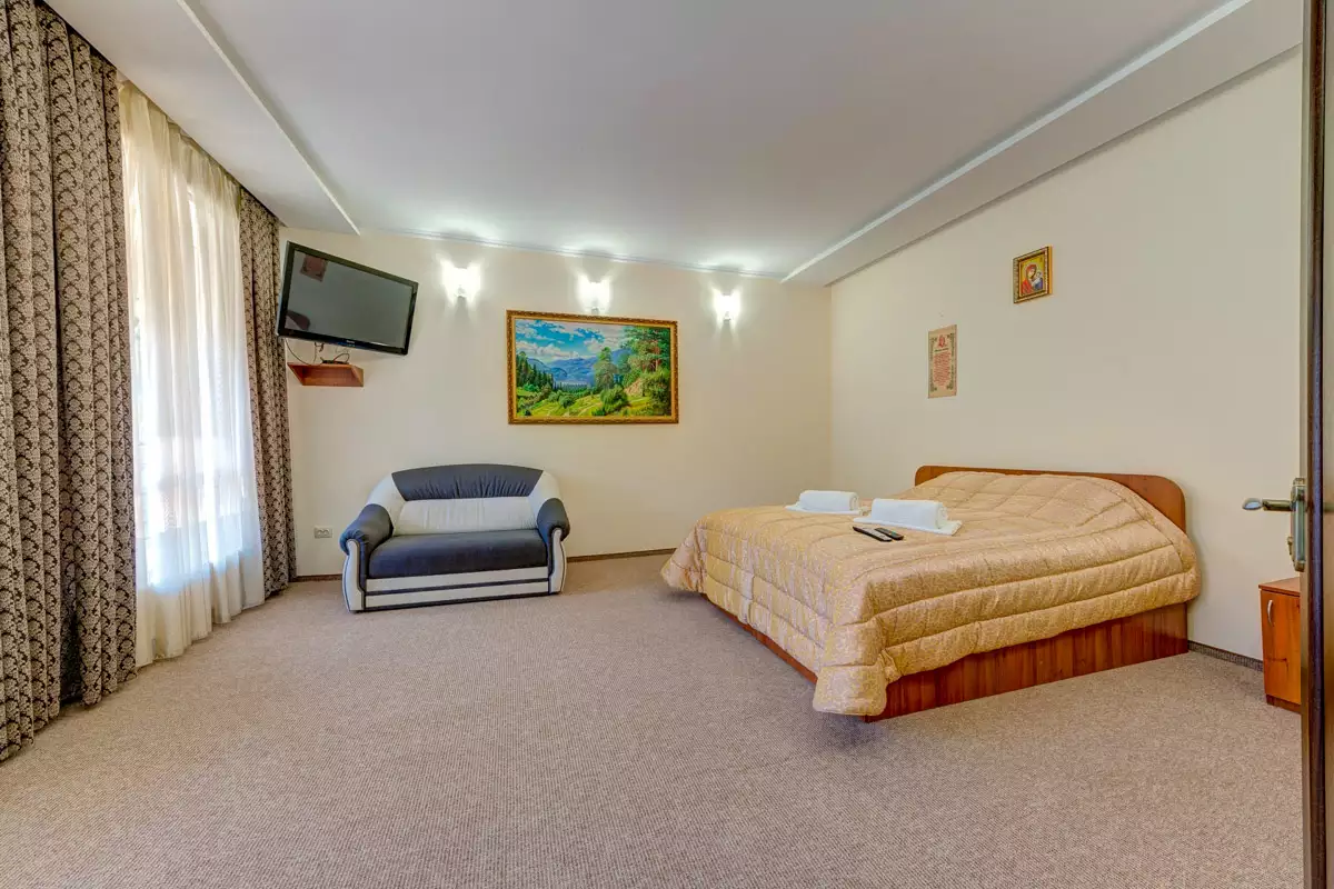 There is a hotel and several cottages on the territory of the complex. It offers a sauna, a ski pass sales point, a terrace with a view of the mountains and a bar, as well as a free private parking lot. All rooms and cottages are equipped with a flat-screen TV with satellite channels. Almost all rooms have a balcony or terrace.