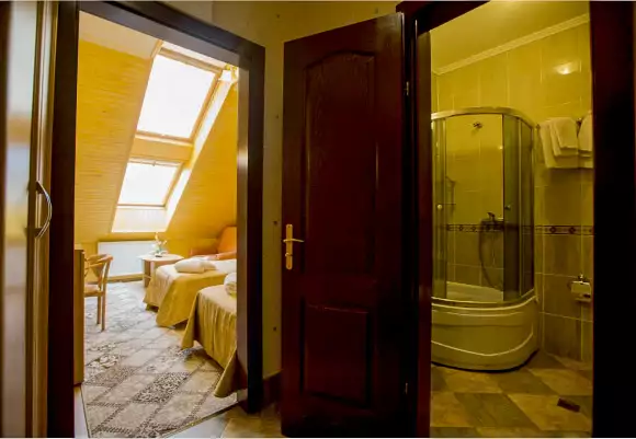 У номері дві кімнати – вітальня, спальня: