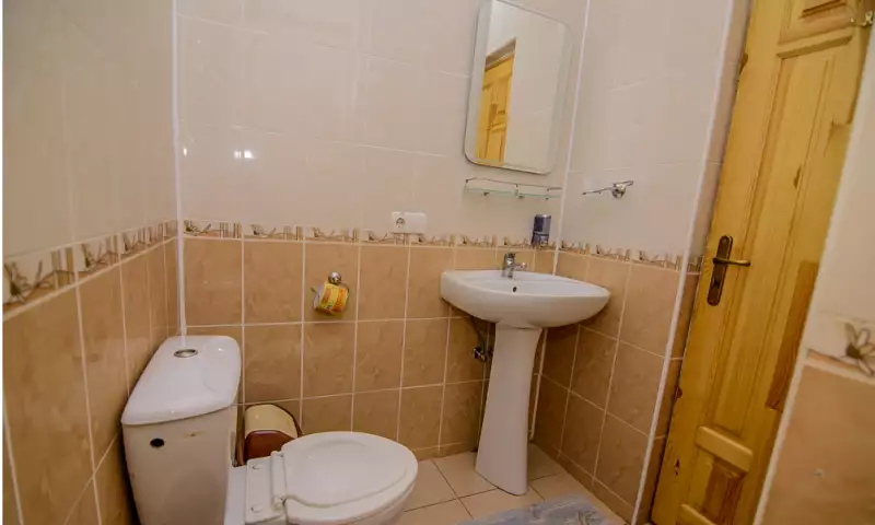 У кімнаті є тумбочки, столик зі стільцями, шафа, санвузол з душовою кабіною, телевізор та доступ до інтернету. На підлозі килимове покриття.