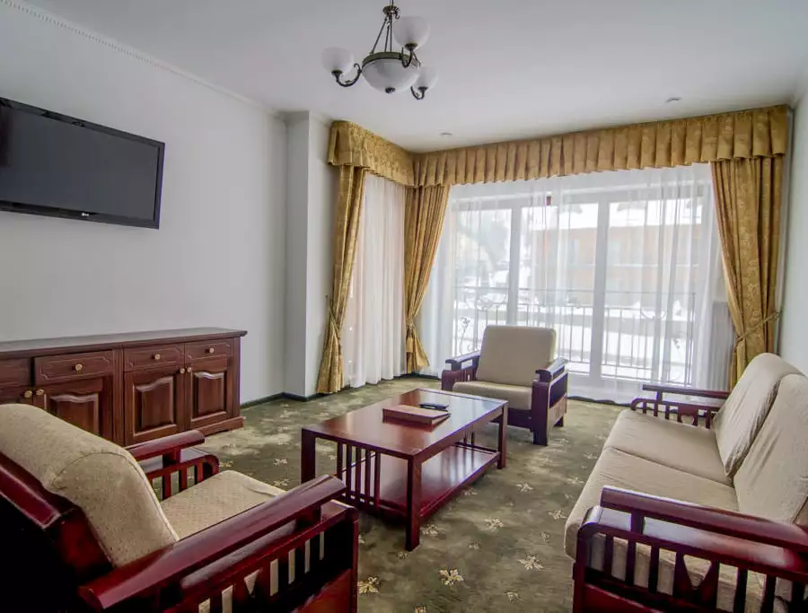 Вишукані трикімнатні номери з сучасним дизайном у готелі “Карпатська Ружа” на гірськолижному курорті Плай (Плав’я), які складаються з 2 спальних кімнат і вітальні.