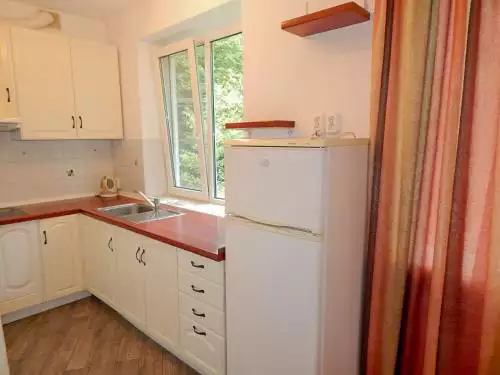 У номер Апартаменти двокімнатні входить 2 спальні з двоспальними ліжками, вітальня з диваном, кухня с електричною плитою, телевізор, холодильник, електрочайник, супутникове ТБ, с/в з ванною, два балкона з видом на гори, два балкона з видом на озера. Вмістимість 6 осіб.