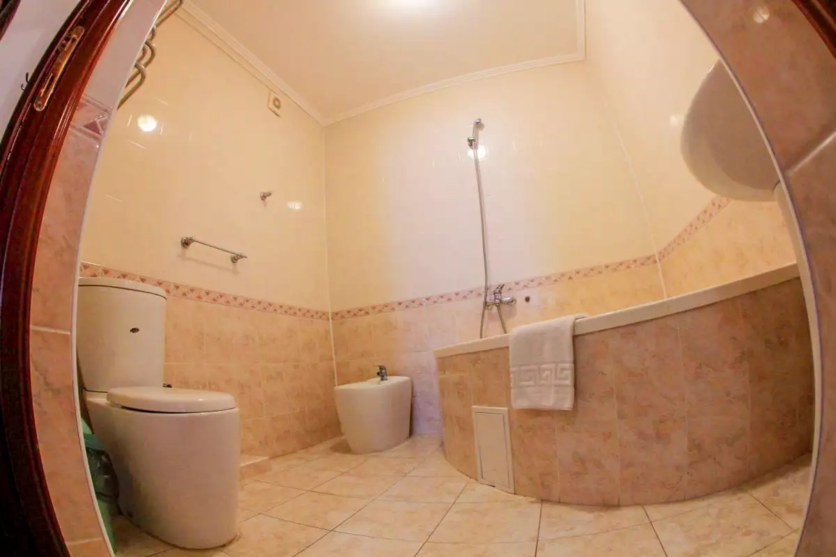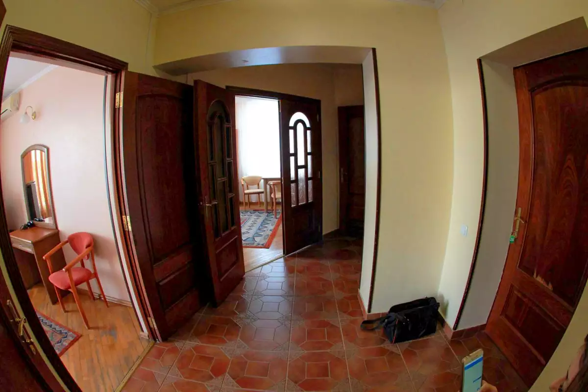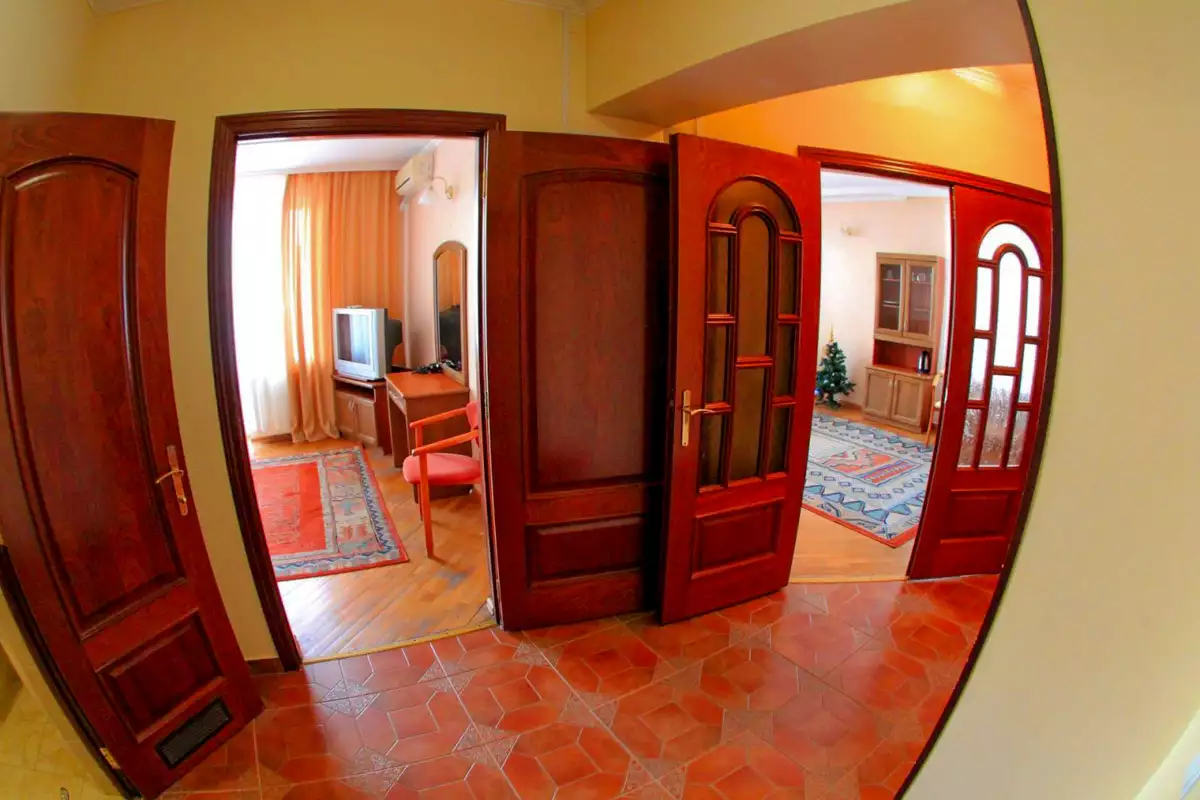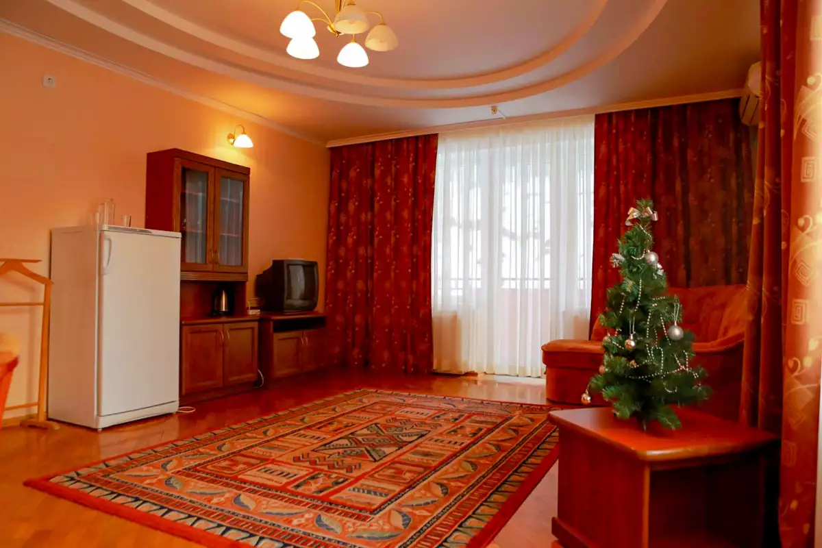 Апартаменти (5 трикімнатних номерів) — передпокій (шафа для одягу, холодильник, електрочайник, посуд), вітальня (м’яка частина, телевізор, балкон), спальня (двоспальне ліжко, телевізор, балкон), дитяча (2 односпальні ліжка, розкладний диван), 2 санвузли (ванна або душ, туалет, умивальник, фен).