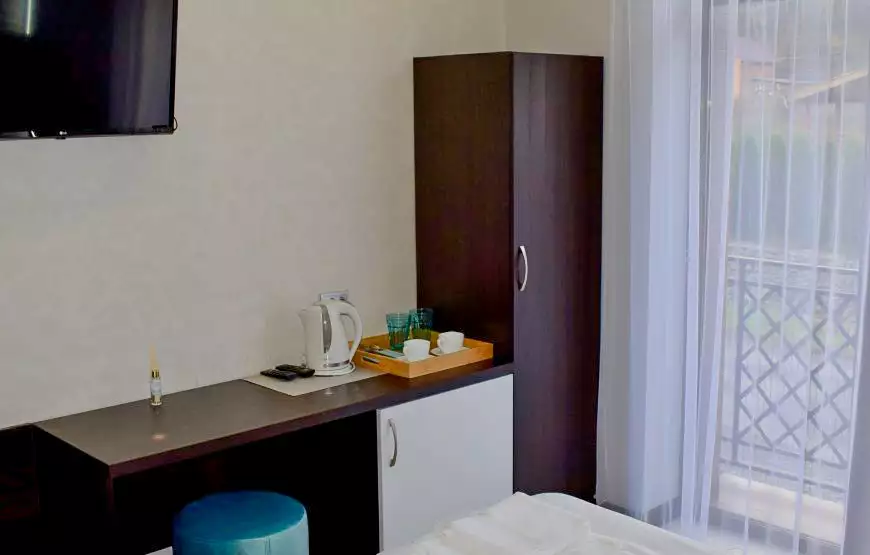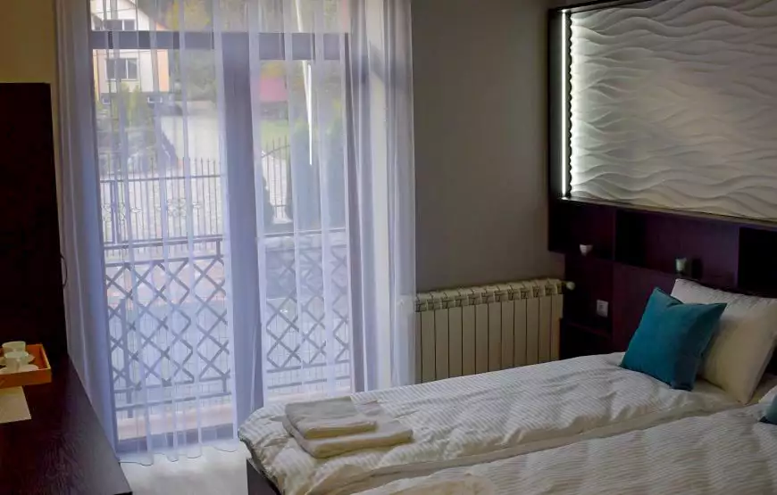 Комфортний двомісний номер, площею 16 кв. м., створений для того, щоб Ви з радістю поверталися до нашої садиби після лікування або цікавих екскурсій. Номер оформлений в сучасному стилі, в теплих світлих тонах. З французького балкончика відкривається краєвид на прекрасні ліси Карпат.
