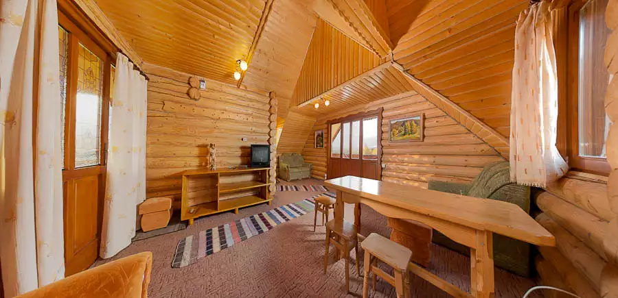 Двомісний номер класу Стандарт у туристичному комплексі Новий Сезон, що розташований у селі Вишка біля гірськолижного курорту Красія.