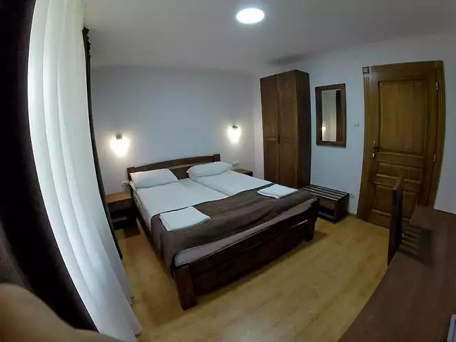 Двомісний номер з балконом, електричним чайником і супутниковим телебаченням у готелі “Водограй” у селі Лумшори.
