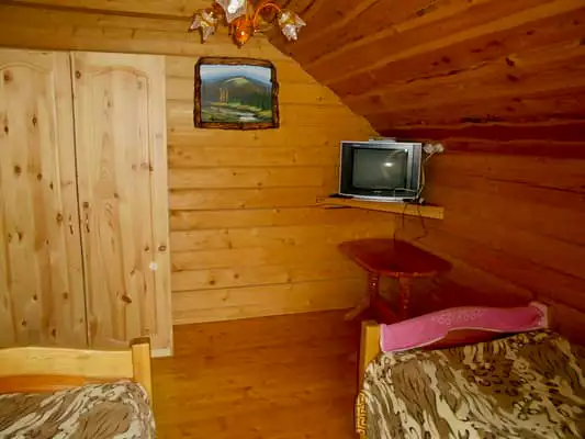 Двомісний номер на третьому поверсі готелю “Мисливська вежа”. Номер оснащений 2 односпальними ліжками, тумбочкою, телевізором, є містка шафа і столик, санвузол в номері. Також передбачений невеликий коридор з вішалкою для речей.