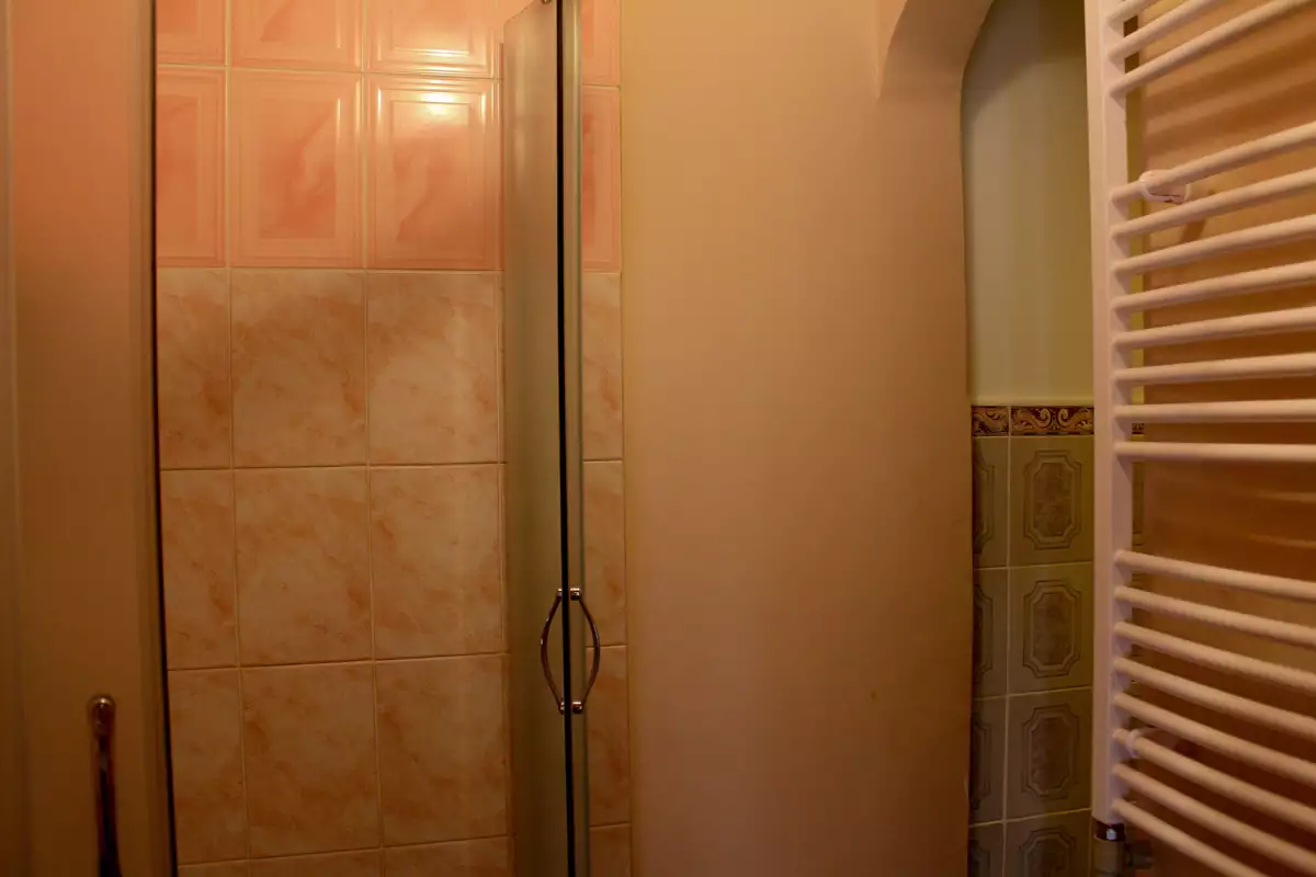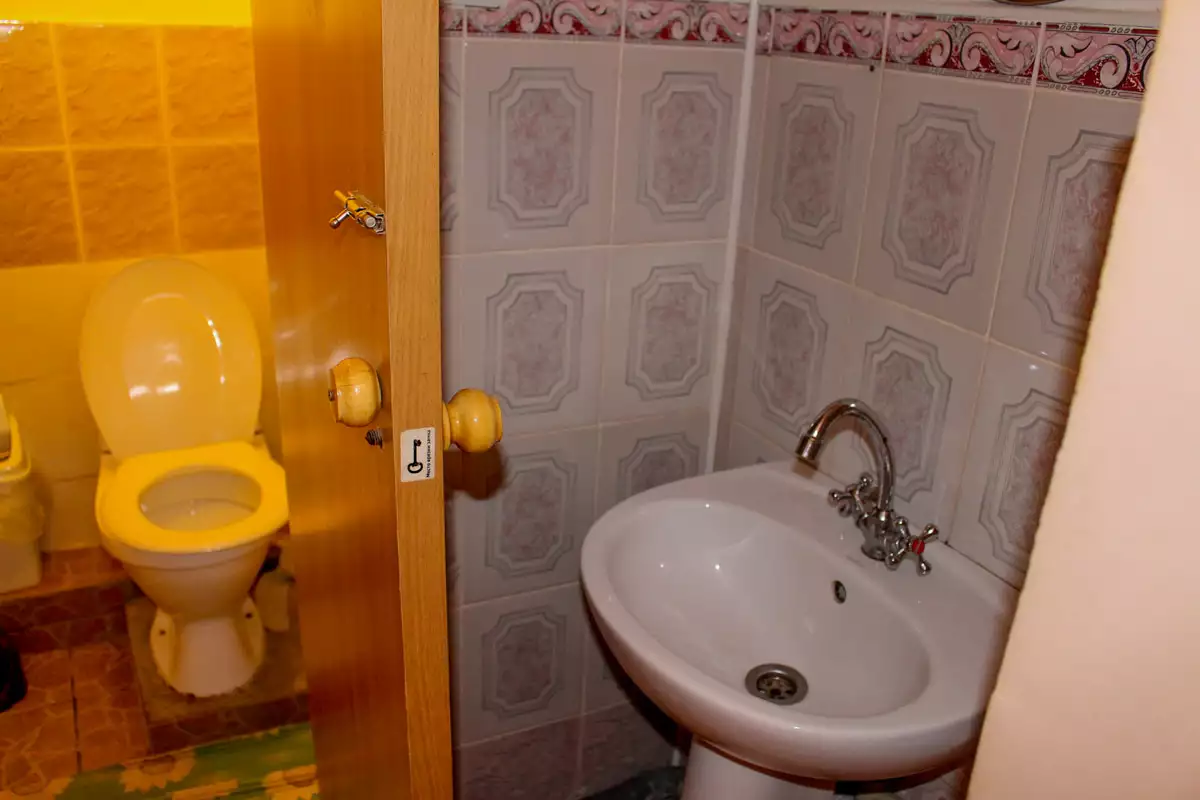 У номері: телевізор, комод для одягу, невеликий набір посуду, санвузол загальний для двох номерів (душова кабіна, туалет, умивальник).