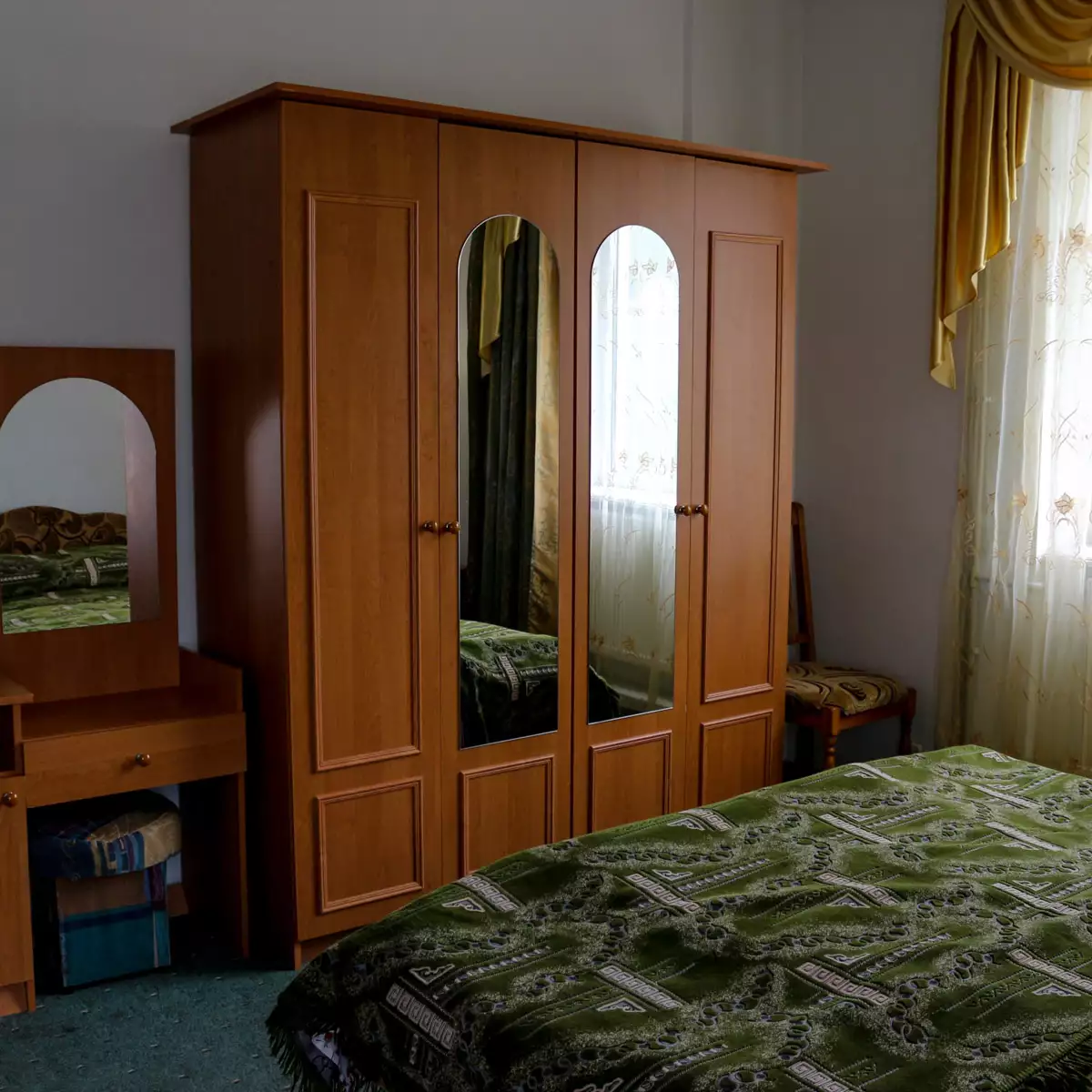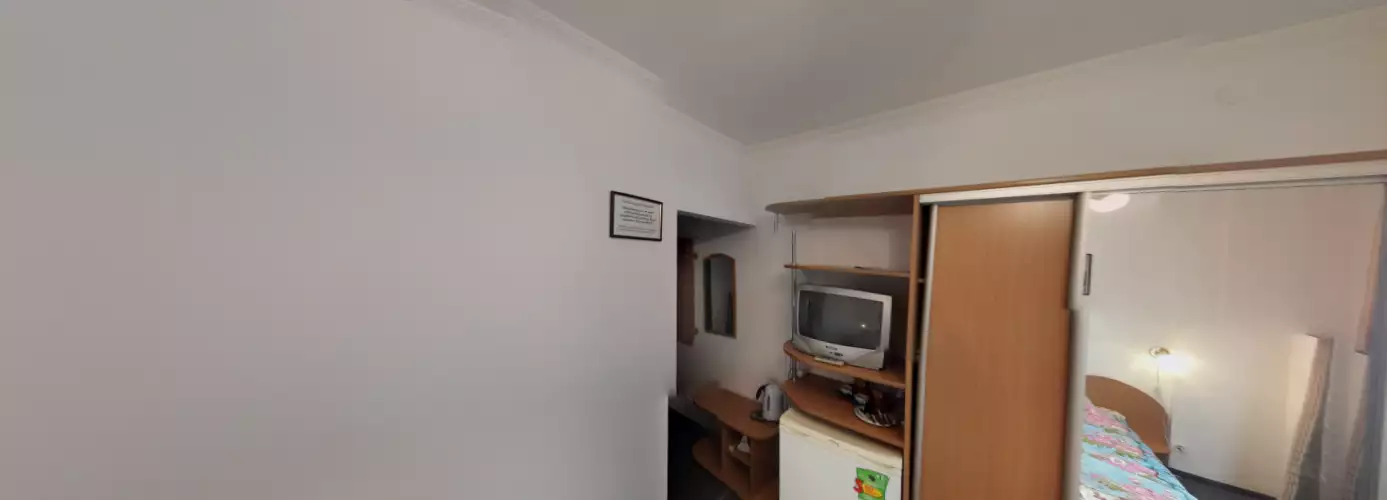 Номер складається зі спальні, невеликого передпокою та санвузла. Площа кімнати складає близько 12 кв. У номері є ліжко, телевізор (супутникове TV), шафа, тумбочки, холодильник, праска, дошка для прасування, електрочайник, посуд.