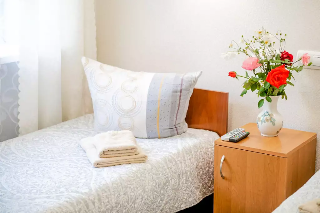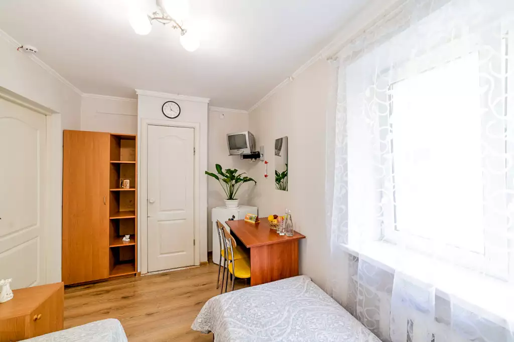 Економ (комплектація номеру): душ, санвузол, холодильник, телевізор, без балкону.