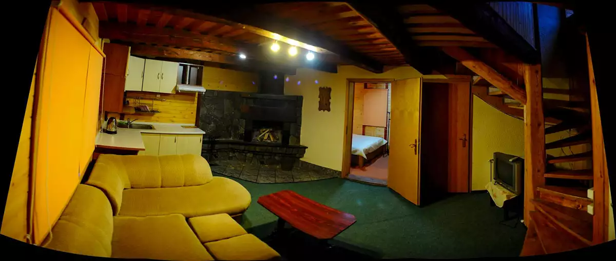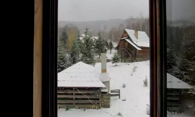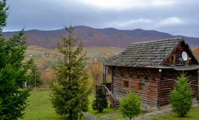 Побудований із екологічно чистого смерекового брусу. Щілини між брусом законопачені натуральним мохом, як це робили в давнину. І ззовні і з середини брус та всі деревяні частини нічим не оброблені, для збереження екологічної чистоти деревини.