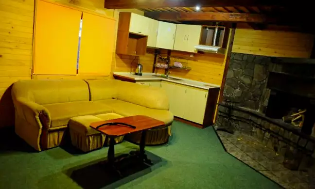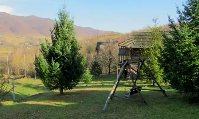 Трохи вище за котеджем на лісовій галявині, в оточенні тисових дерев та яличок, розташована бесідка з мангалом, де мешканці котеджу мають змогу приготувати собі страви на вогні та посидіти на свіжому повтрі як взимку так і влітку.