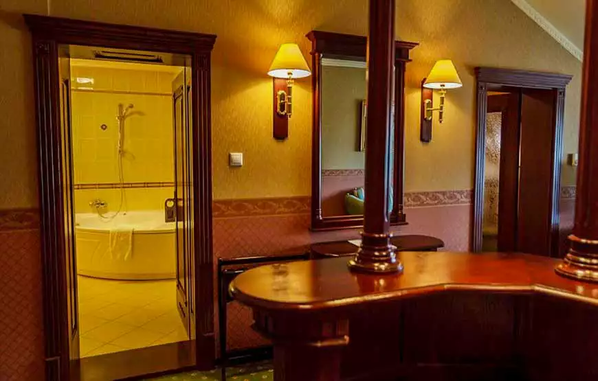 Двокімнатний номер категорії Люкс створений для максимально комфортного відпочинку. Інтер’єрне рішення поєднує окрему спальну кімнату та простору вітальню з барною стійкою, диваном, кріслами, кавовим столиком. Гідромасажна ванна, надана в розпорядження гостей цього номера, доповнює традиційні елементи готельних стандартів.
