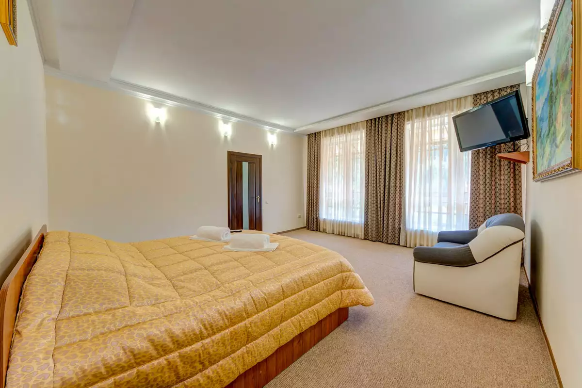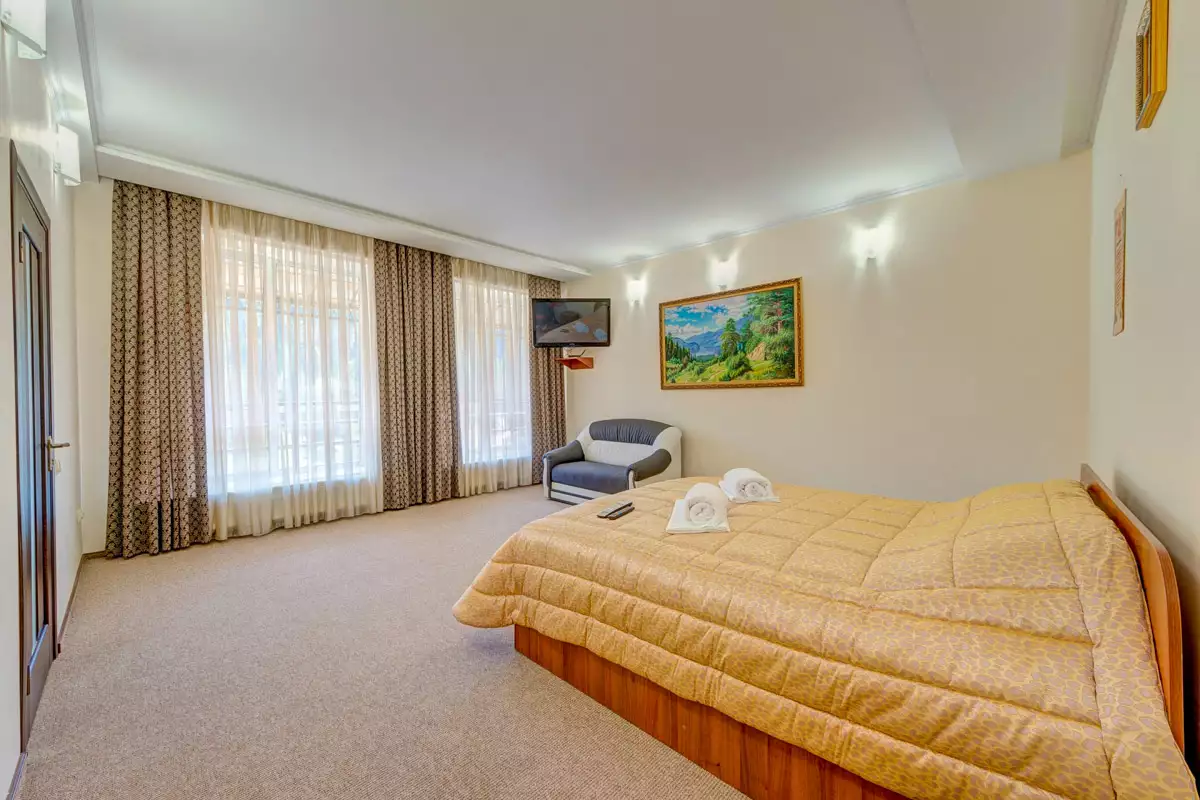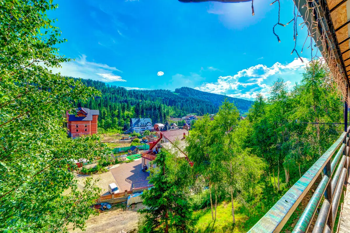 Котедж «Оглядовий» розташований в селі Поляниця, урочище Вишня на териториї туристичного комплексу «Торба». Відстань до першого підйомника в Буковелі 500 м. Двоповерховий будинок складається з 8-ми блоків – окремих апартаментів.