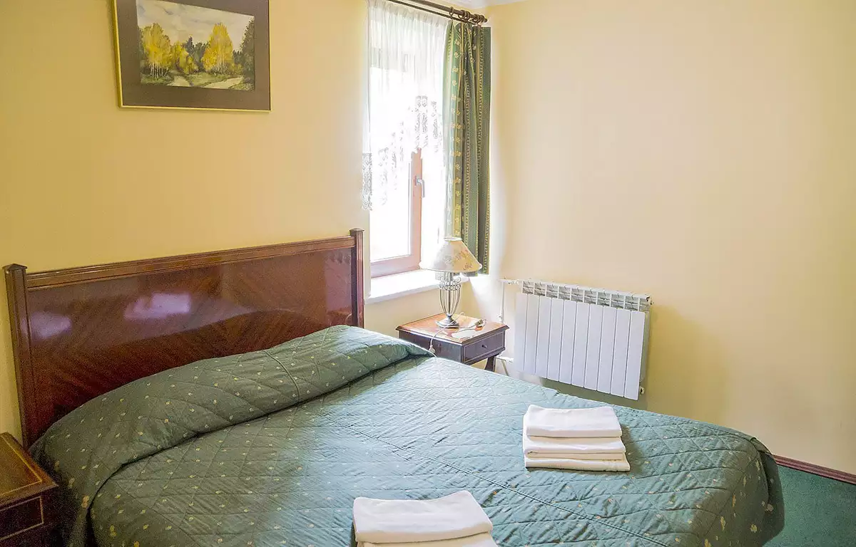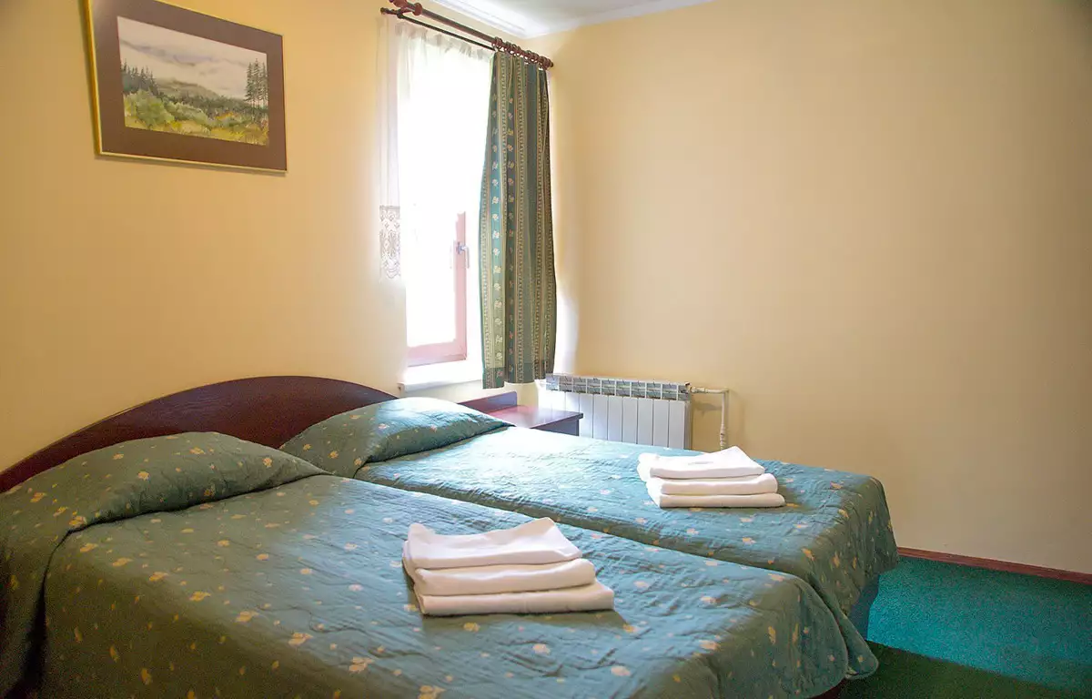 У номері: м’який розкладний диван, два односпальних ліжка, набір рушників, фен, приліжкові тумби, нічник, туалетний і журнальний столик, крісла, шафа,телевізор, холодильник, два санвузли.