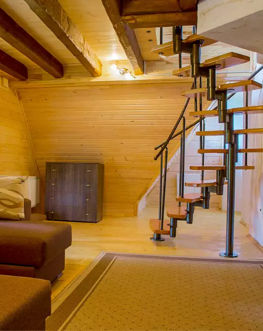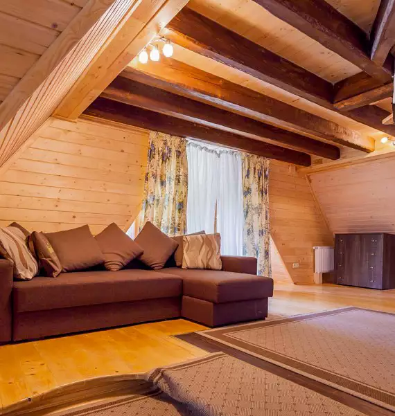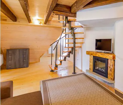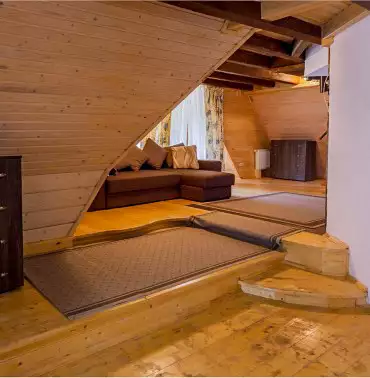 Дворівневий номер класу Люкс площею 58 м. кв. В кожному номері холодильник, санвузол, душова кабінка та балкон.