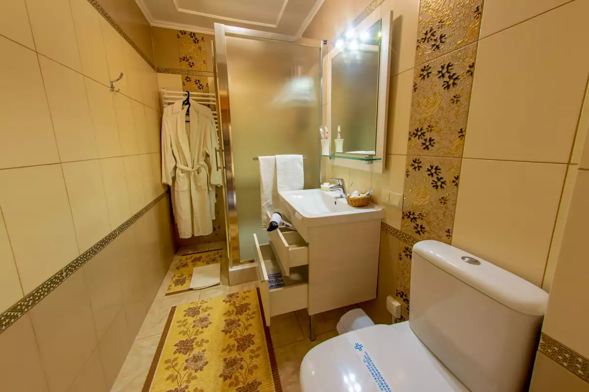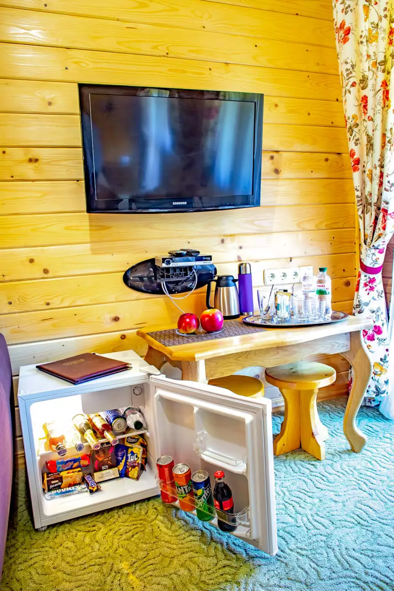 Максимально комфортні апартаменти для самих вимогливих гостей. У Вашому розпорядженні: широке двомісне ліжко, м’які меблі, великий телевізор, холодильник, затишні халати і, звичайно ж, комфортні умови для кожної хвилини перебування тут.