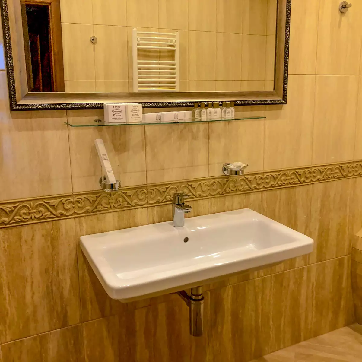- Фен, міні-парфумерія, халати, тапочки, рушники
