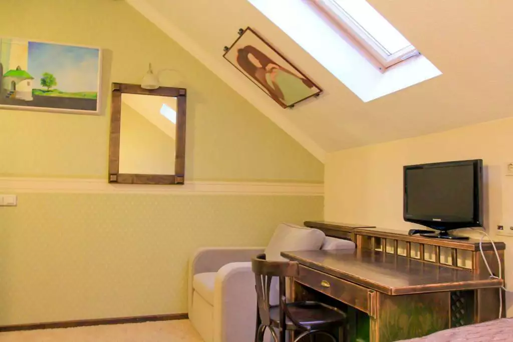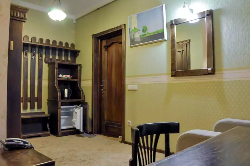 Напівлюкс із вітальнею, електричним чайником та халатом.