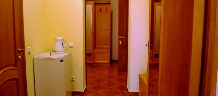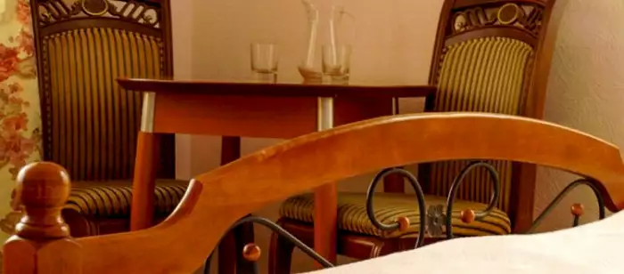 Номери 1-кімнатні, без балкона (крім 5 поверха – мансарда 3 номера). У номері є передпокій, санвузол 4,5 кв. м. з кутовою ванною і феном, двоспальне ліжко, телевізор, холодильник, стіл з двома стільцями, графін та дві склянки, два рушники на кожного гостя.