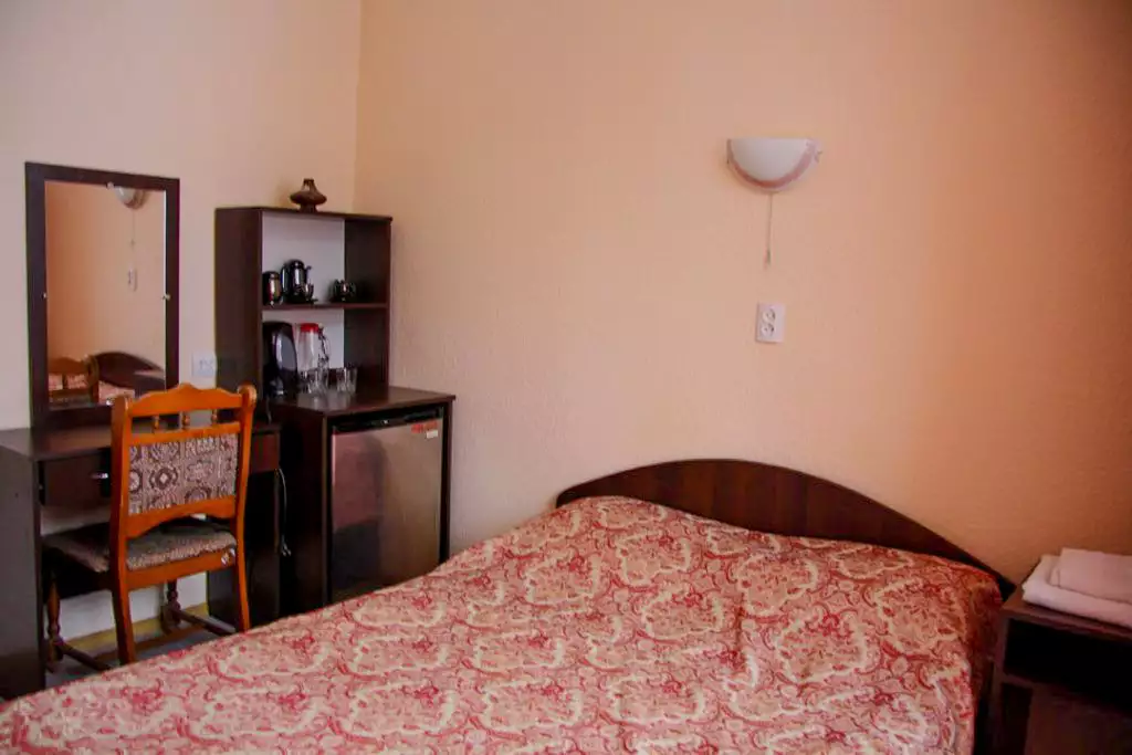 Комфортний номер із сучасним інтер’єром з усіма зручностями та балконом. У номері холодильник телевізор, санвузл з душем.