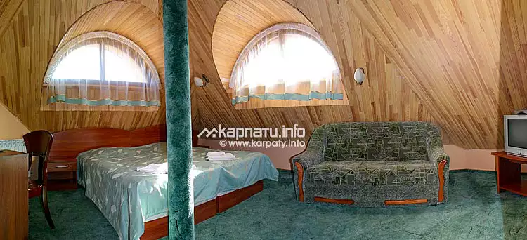 Півлюкс (20-26 м2) — двоспальне ліжко, розкладний диван або крісло, телевізор, шафа для одягу, балкон, санвузол (туалет, умивальник, душ, фен).
