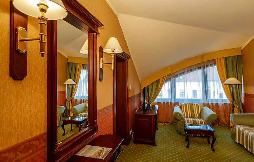 Просторі Президентські апартаменти з мальовничим видом на площу Ш. Петефі – найбільший номер готелю, який надає виключні можливості для відпочинку по-президентськи.