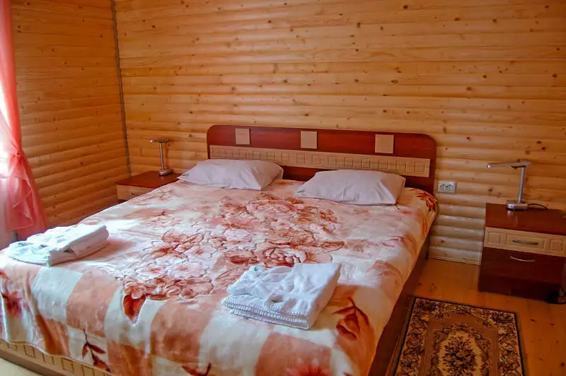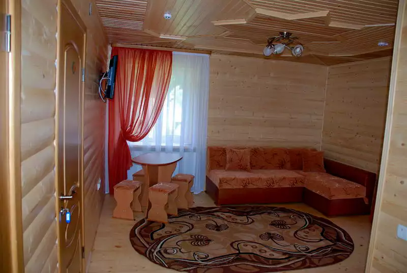 Люкс 3-х кімнатний (3-х кімнатний, 4-6 місний номер з балконом, повністю оздоблений натуральною деревиною, загальною площею – 58 м. кв.; у одному з номерів є камін).