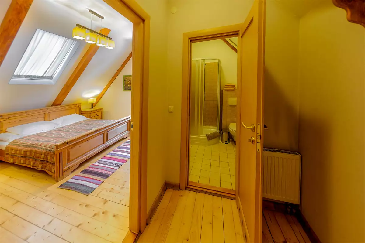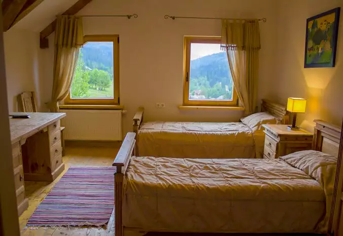 Номер у сучасному будиночку, зручний, світлий, з дерев’яними меблями та всіма зручностями. Ви відчуєте себе тут комфортно та затишно. Гори, які видно з вікна, змушують забути про повсякденні справи та надихатися природою, отримати найкращий відпочинок у горах.