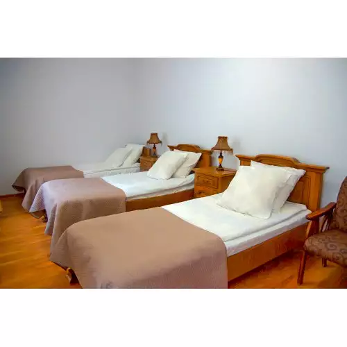 Це однокімнатний номер із односпальними ліжками. Кожен номер має два ліжка, телевізор, кондиціонер, холодильник та ванну кімнату.
