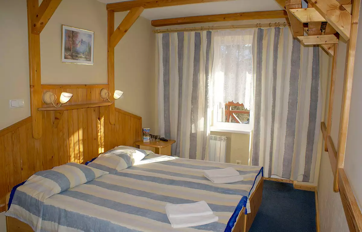У номері: одне двоспальне або два односпальних ліжка, набір рушників, приліжкова тумба, журнальний столик, крісло, шафа, санвузол, душ, телевізор, холодильник.