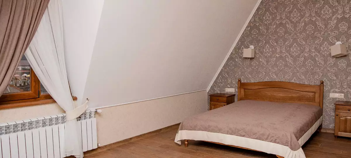 Затишні однокімнатні номери з двомісним ліжком або двома роздільними одномісними ліжками, окремим санвузлом з душем. В деяких номерах додатково є диван.