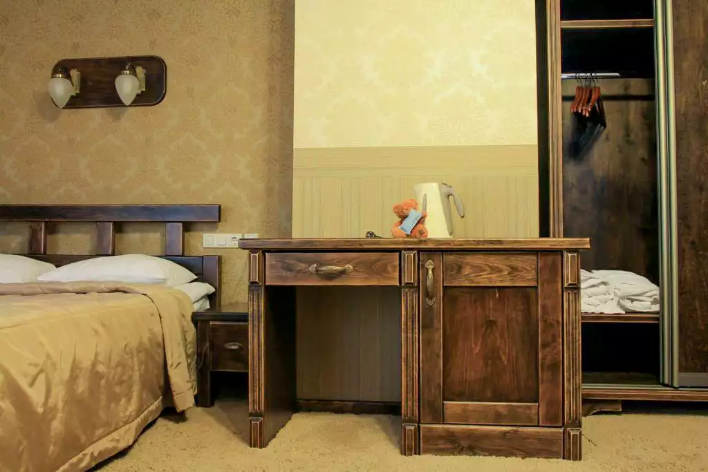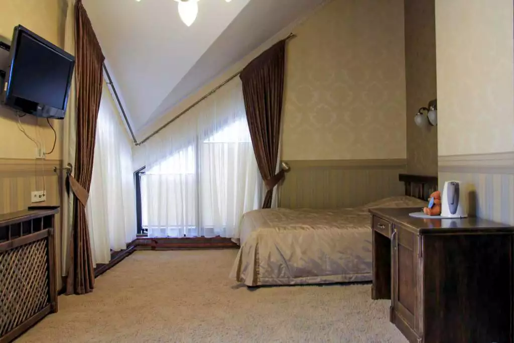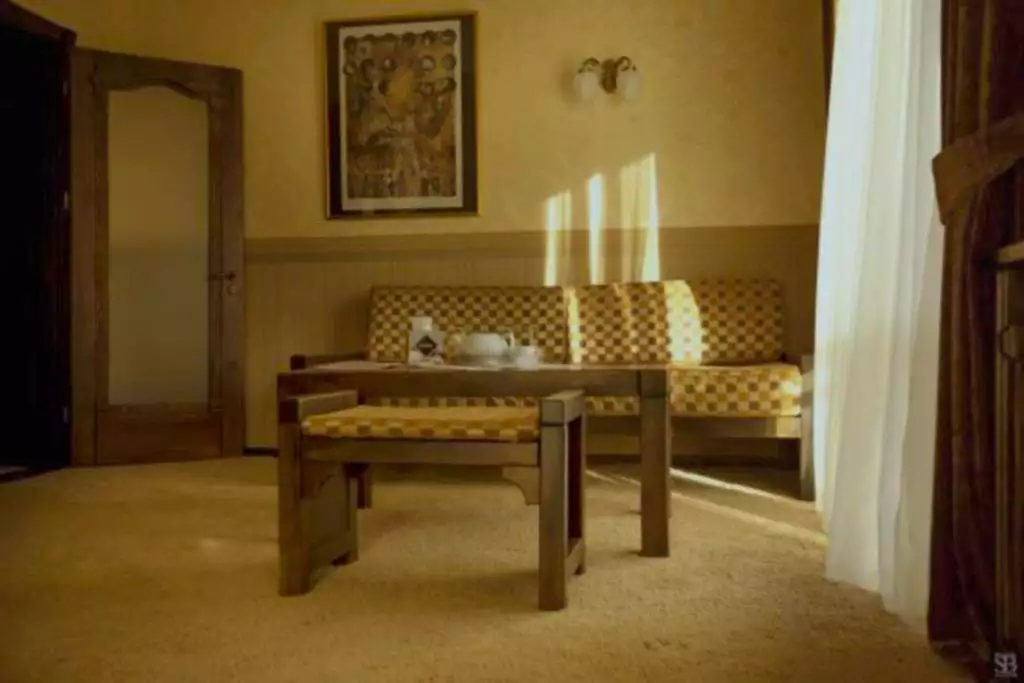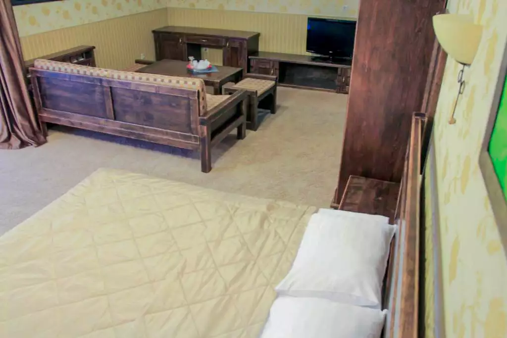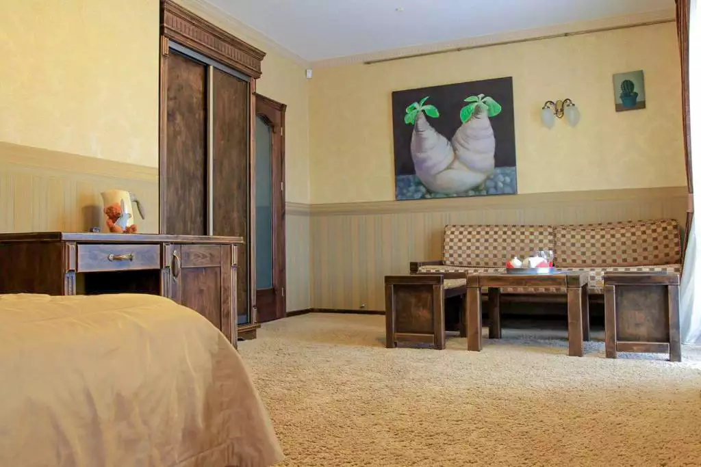Цей номер-студіо з вітальним куточком оснащений телевізором із супутниковими каналами та електричним чайником.