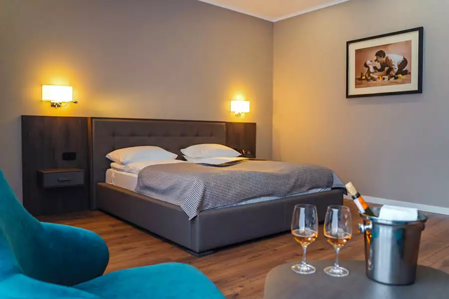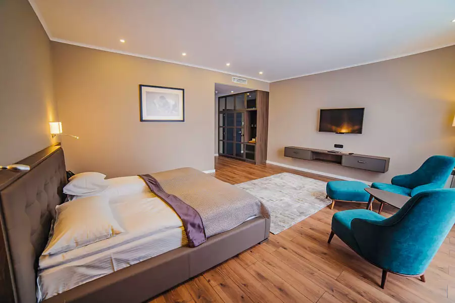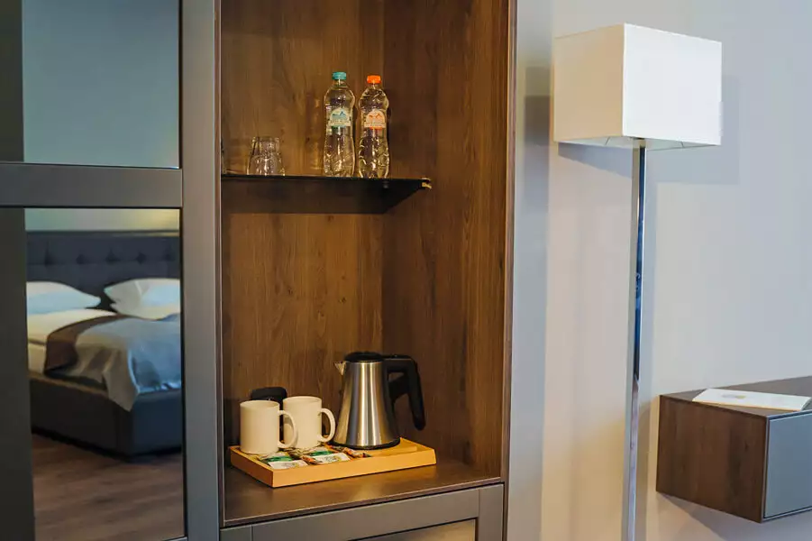 В номері є індивідуальний сейф, Wi-Fi, телефон, супутникове телебачення, LED-телевізор, піднос гостинності (електрочайник, чай, кава, цукор), ліжко 180х200 см з ортопедичним матрацом, міні-бар.