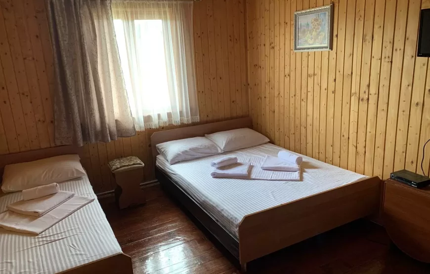 Тримісний економ включває три односпальні ліжка, вішалку для одягу, телевізор з доступом до супутникових каналів, холодильник. Санвузол розташовується на території (душ, окремо туалет та умивальник). У садибі “Мімоза” доступні для бронювання два номери цієї категорії.