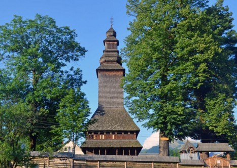 On a hill in the center of the village Kolochava, to the left of the highway, stands the majestic Svyatoduhovskaya church with a bell tower. The temple was built in 1795 by Master Ferenc Tecca. The church is slender and perfect in proportions: the high tower above Babin ends with a baroque dome. A bunk wooden bell tower standing side by side with a canopy. Due to inter-denominational disputes between the Orthodox and Greek-Catholic religious communities, the village is empty and a museum. The last restoration of the temple and bell tower was carried out in 1969-1970.