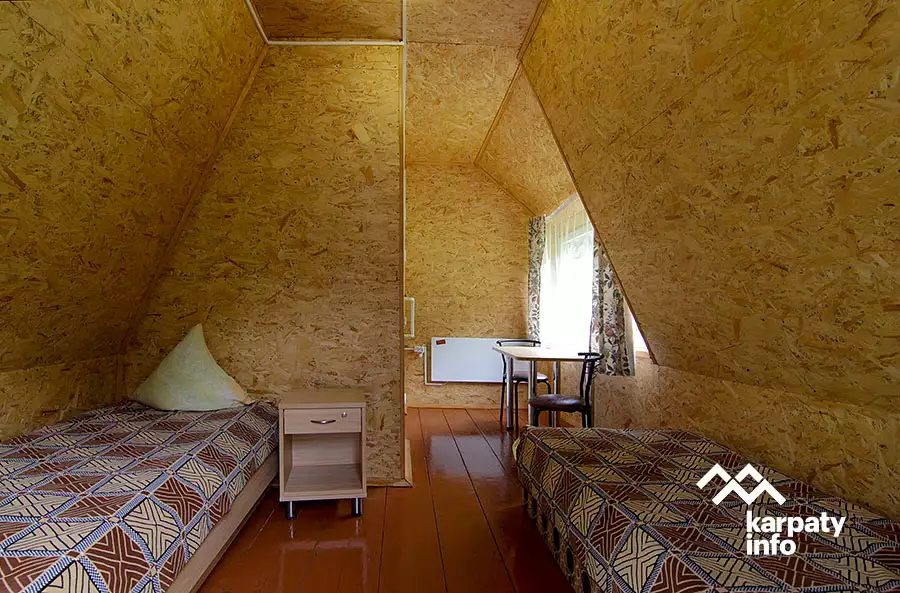 На большой обустроенной территории туристической базы “Трембита” расположен административный корпус с 5 улучшенными номерами, два корпуса на 24 места (один из них двухэтажный), двухместный коттедж и летние домики, беседка, мангал. Недалеко находятся лес и река.