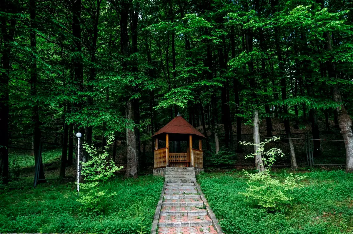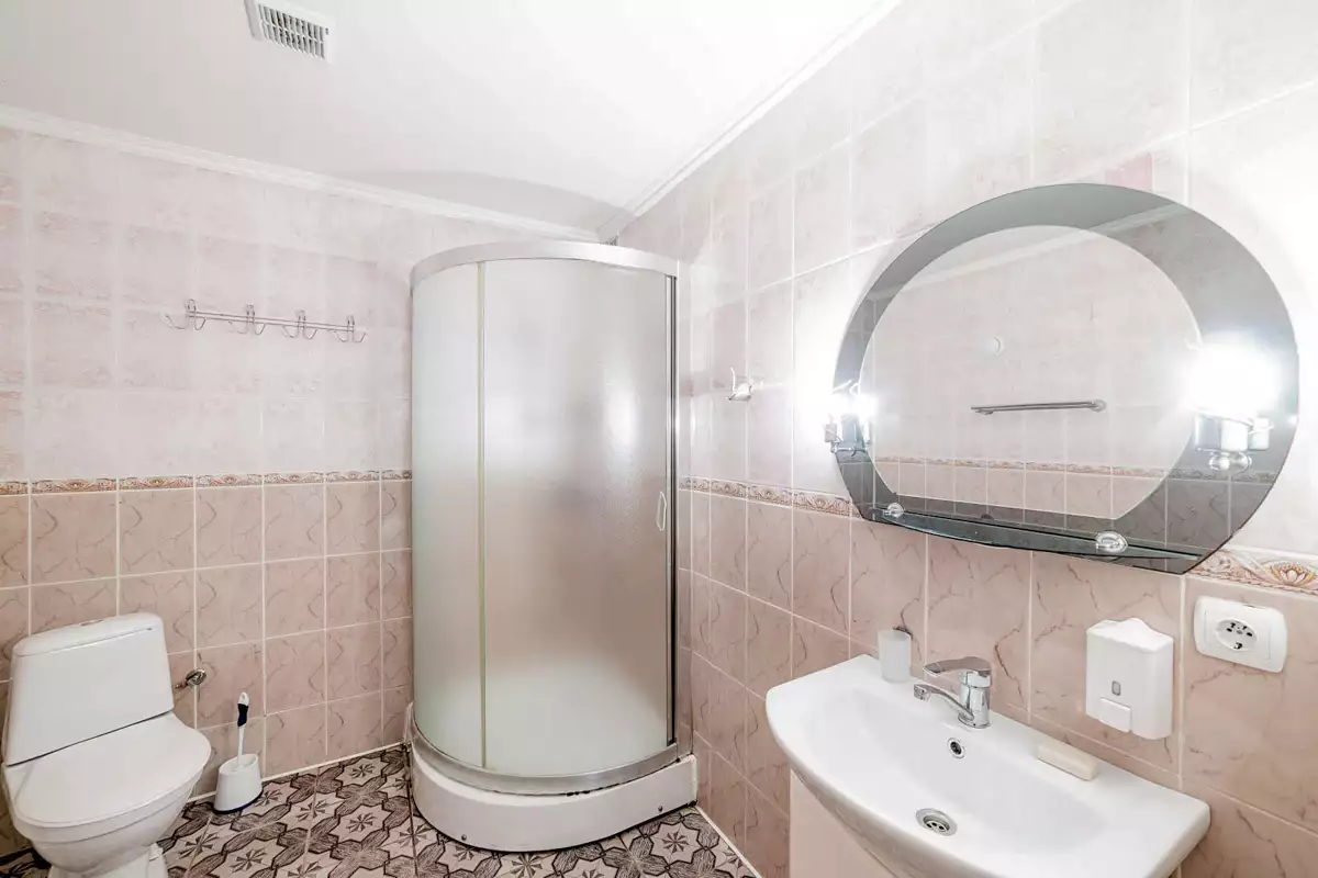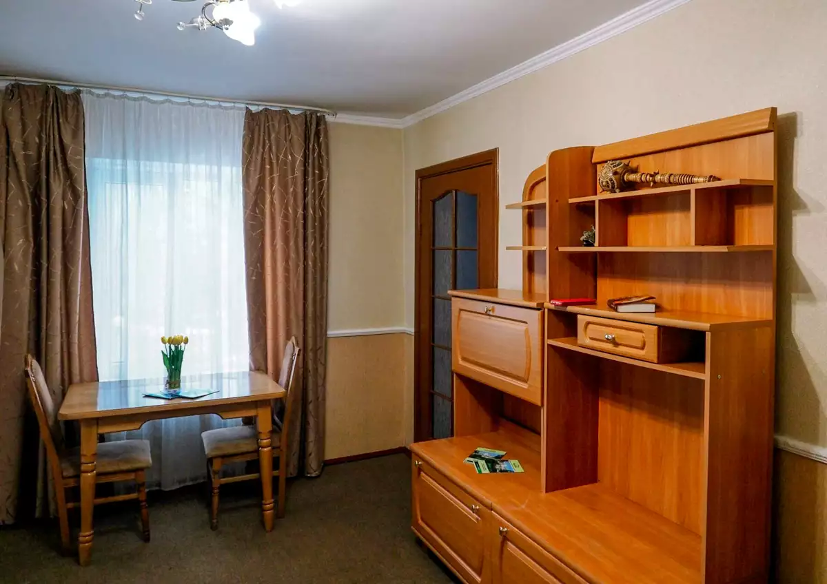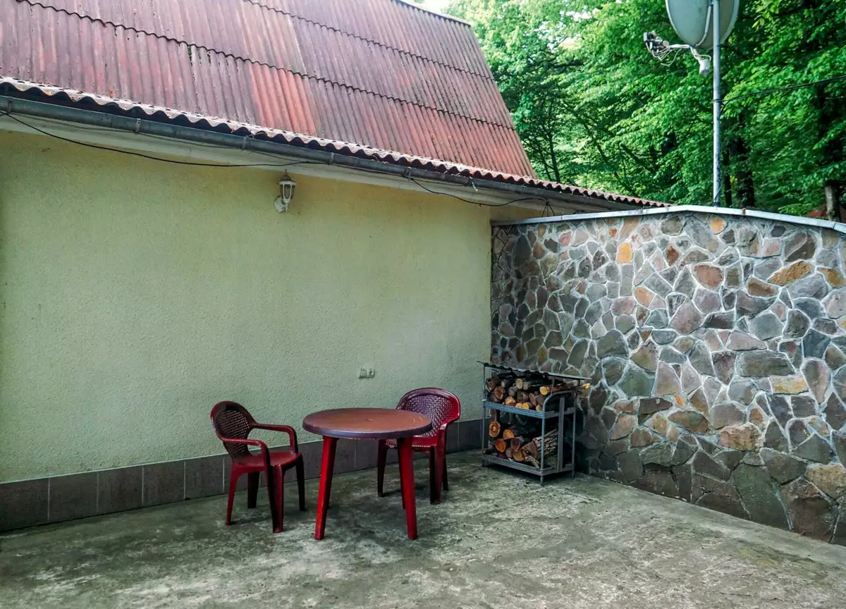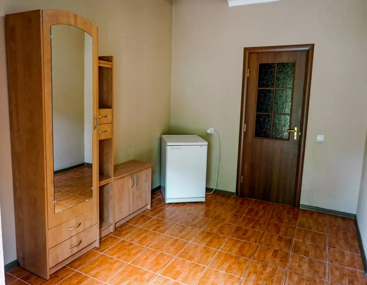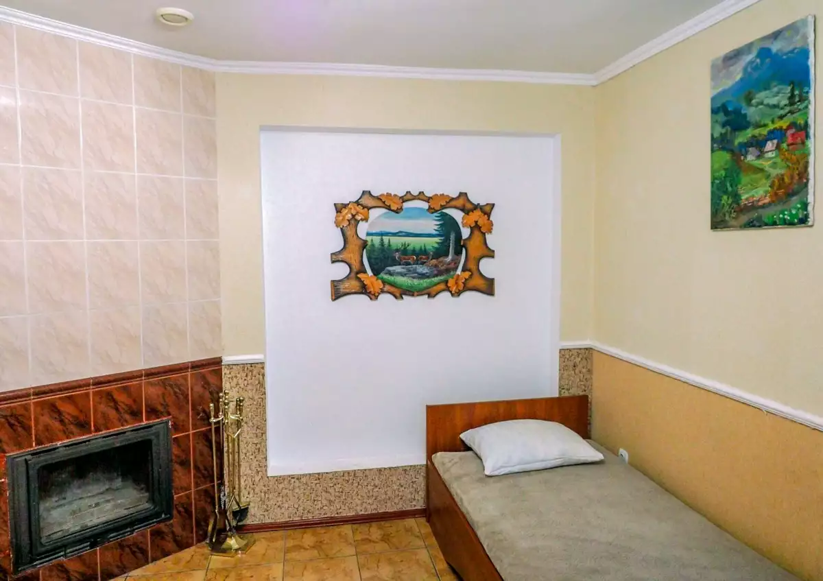 Коттедж Двухкомнатный расположен недалеко от основного корпуса с отдельным входом и летней площадкой. В первой комнате расположен диван, столик и камин. Во второй комнате находится удобная двуспальная кровать (или две односпальные), шкаф, небольшой стол. Санузел просторный, здесь есть душевая кабина, раковина, унитаз, биде, пол с подогревом. Для создания уютной атмосферы в номере достаточно развести огонь в камине и наслаждаться отдыхом.
