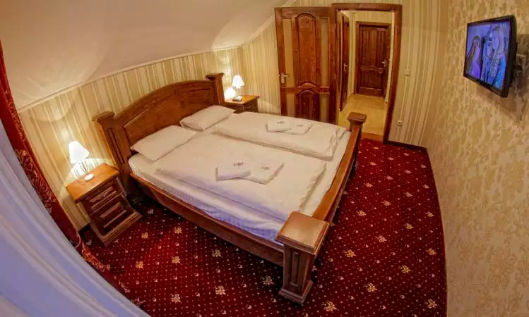 2. В комнатах категории “Полулюкс” есть двуспальные кровати, тумбочки, плазменный телевизор.